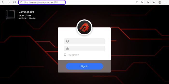 • Nhập  https://YOUR_DDNS:ADM HTTPS port/  vào trình duyệt web của bạn để kết nối với NAS.