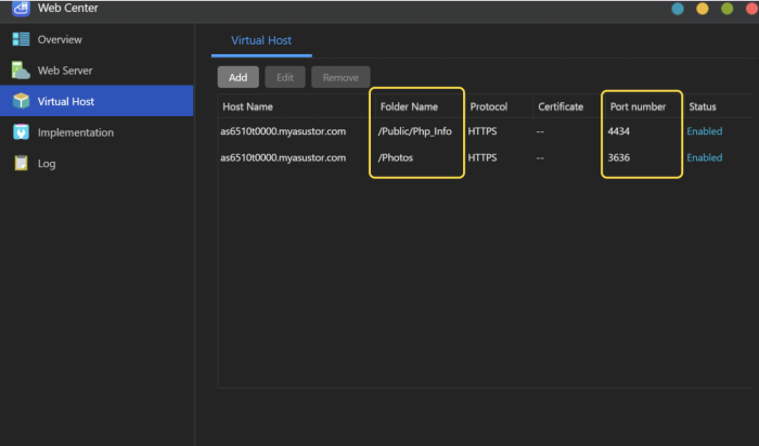 Lưu ý: Người dùng không cần thiết lập máy chủ ảo cho các ứng dụng máy chủ web được cài đặt trên ADM và có thể đồng thời mở nhiều ứng dụng web khác nhau thông qua ADM Web Center. (Ví dụ: WordPress, PhpMyadmin, v.v.)